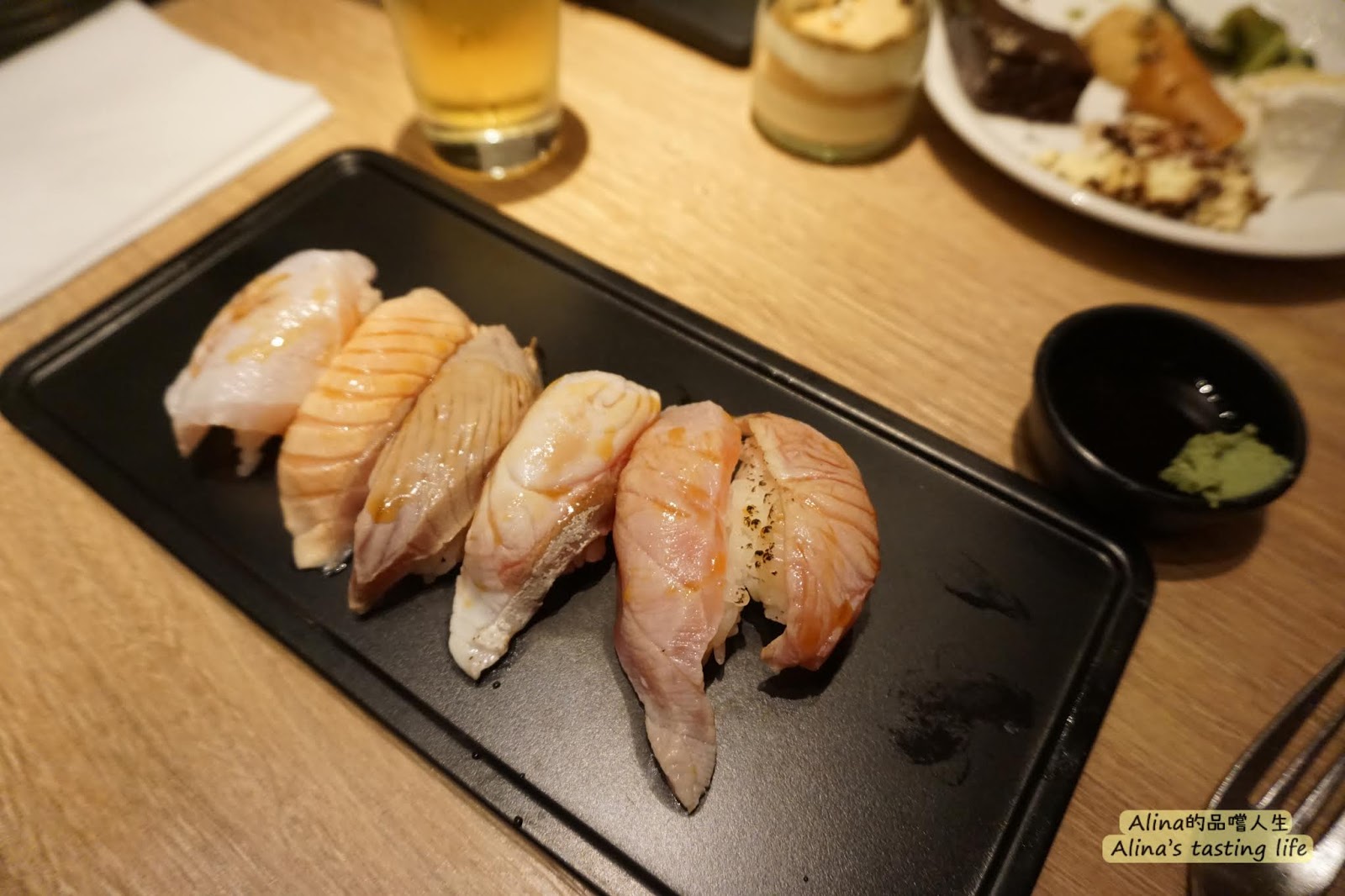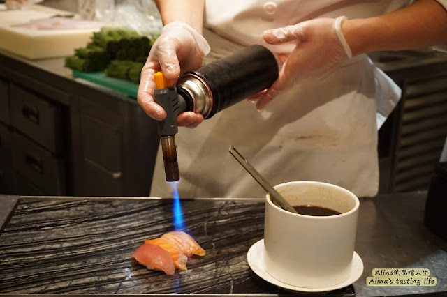 我跟老陳很愛吃炙燒鮭魚握壽司,