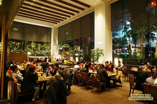 主要有兩區,會先經過非常滿但是有點壓迫的一區,再來是有落地窗景致、燈光氣氛很棒的座位區!
