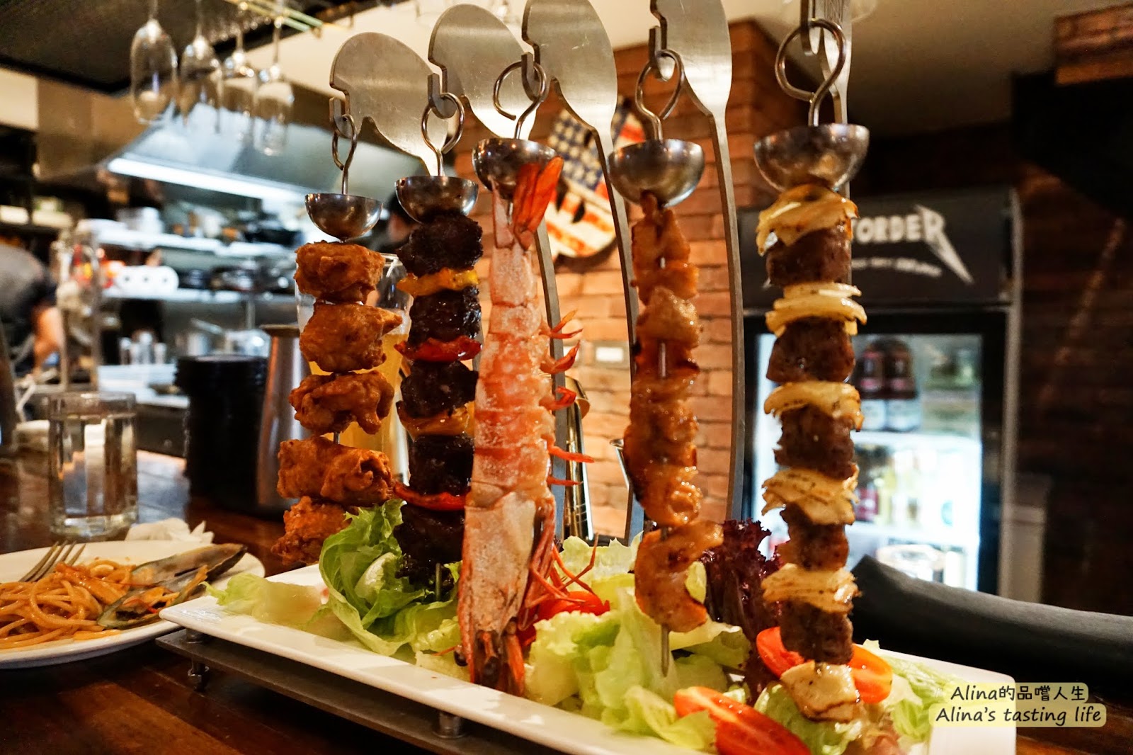 霸氣的串燒啊!總共有五根這樣一根平均是112元~好貴啊~而且還要加服務費!點的當下是想一次可以吃到好幾種肉,但是送上來我覺得量可以再多一點,比方說肉塊可以再大一點!