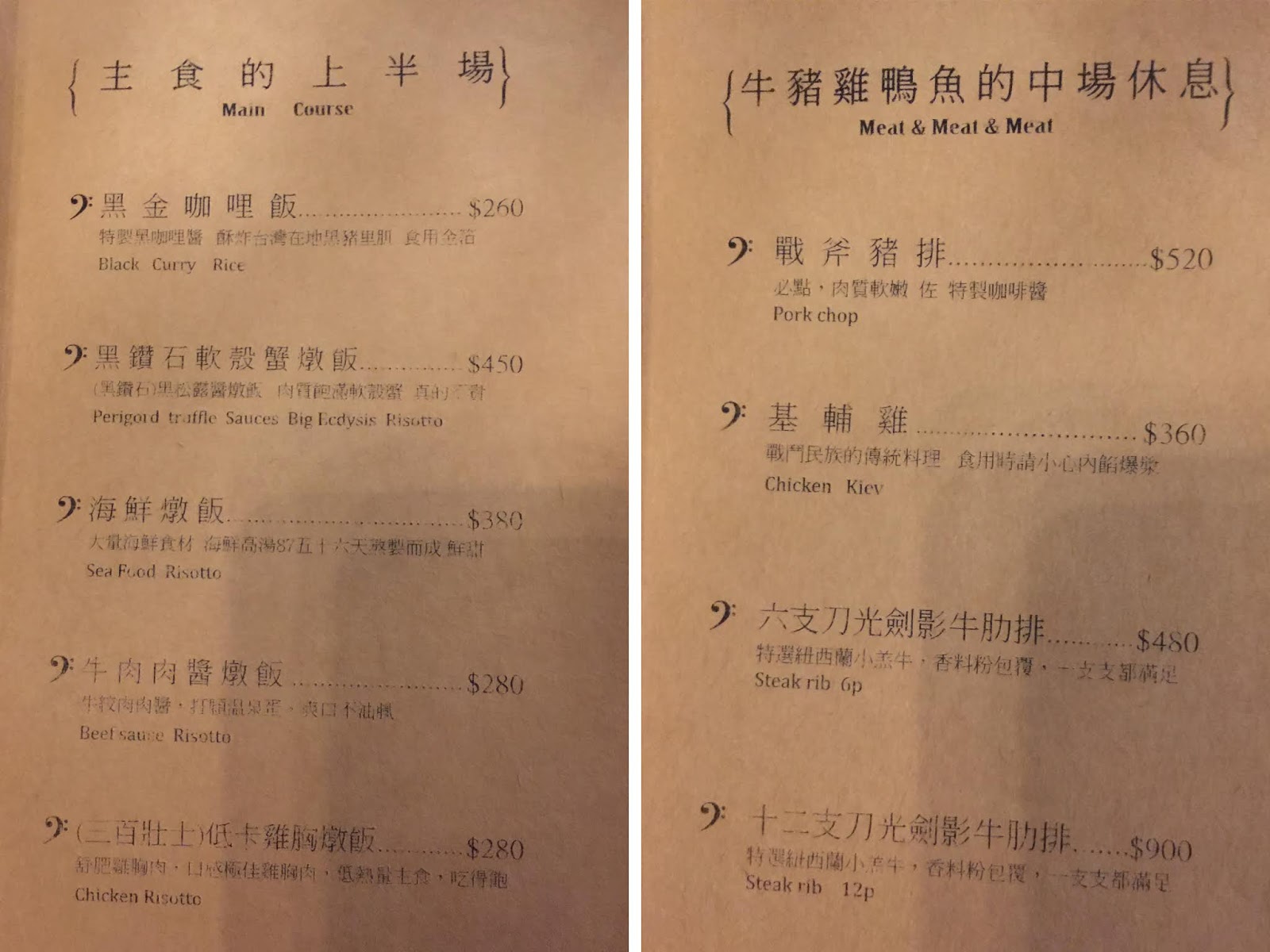 菜單是皮革+牛皮紙,而且相當有份量、質感!