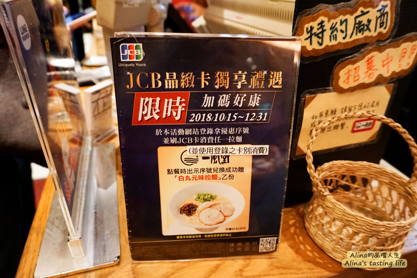 某天老陳突然跟我說,他用JCB信用卡的活動,換到了一風堂拉麵的優惠,而且老陳說沒有到很難搶(如下圖)